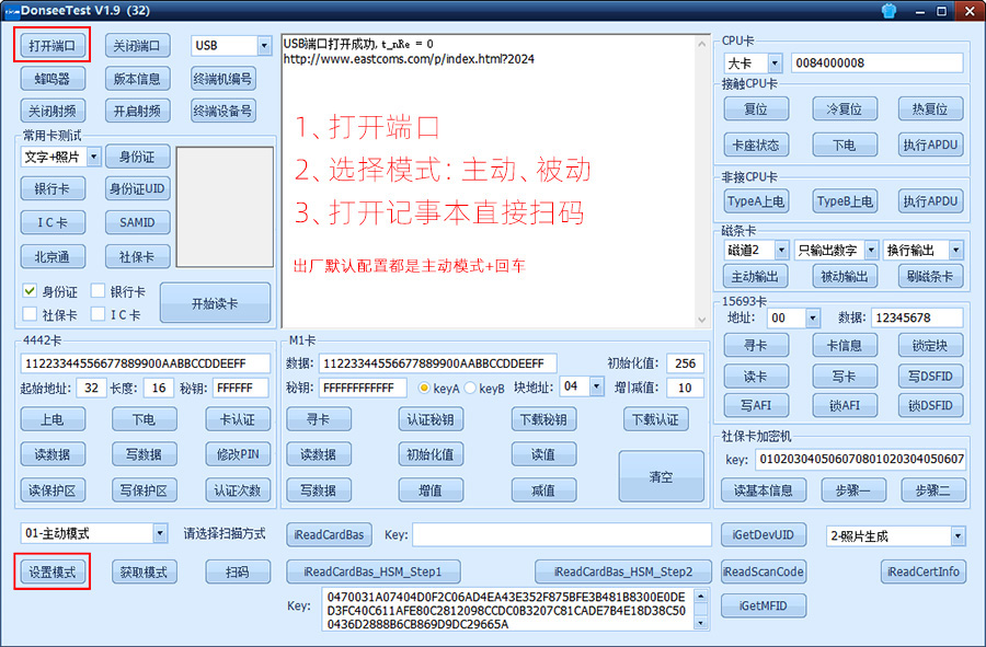 如需使用被動(dòng)輸出,需要用DonseeTest測(cè)試軟件設(shè)置讀卡器配置,具體操作如下: